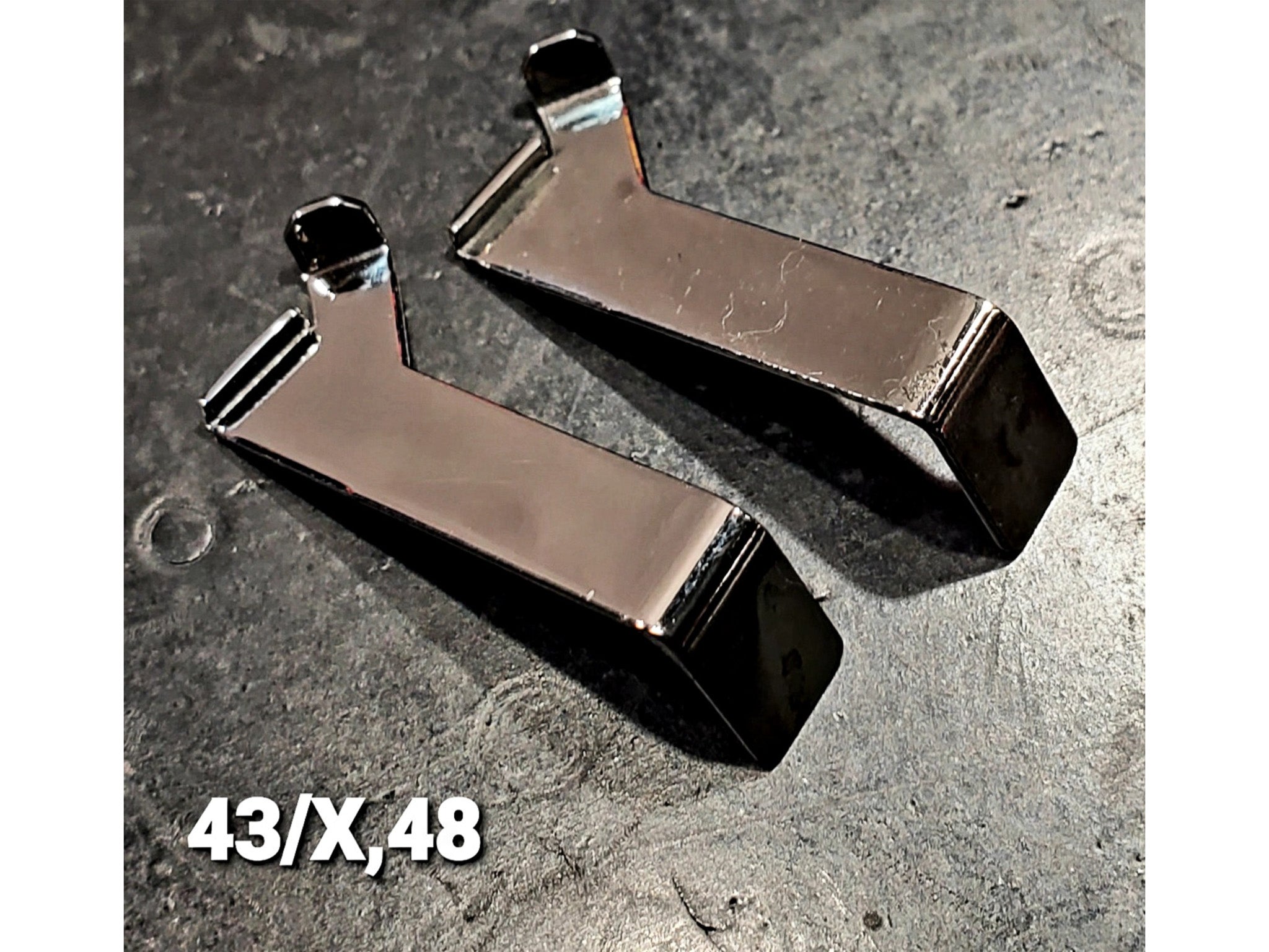 These are highly refined, modified, and enhanced glock trigger connectors that facilitate extraordinary trigger action. My proprietary angling and honing process promotes ultra smooth drag free break travel as well as lightning reset speeds that are audible and tactile. A multi-wheel and compound polishing process keep this performance upgrade running and gunning for time immemorial.( a long ass time) These connectors are standard in the EVOLUTION X systems.